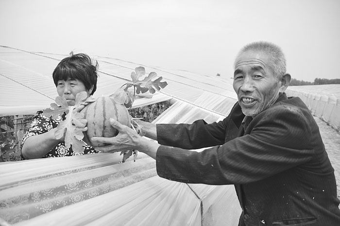 ![]() 贾寺院村温室西瓜种植户正在采摘西瓜。
