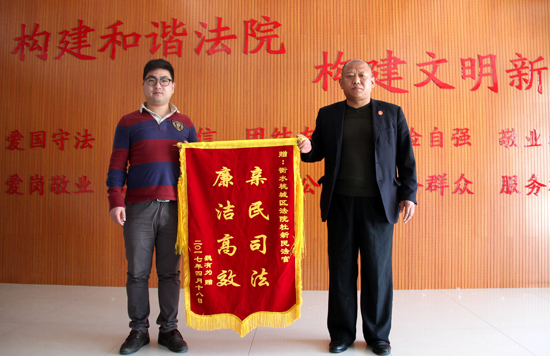 作为一名当事人,他在整个案件审理过程中没来过法院一趟。作为一名群众,他在结案后专程从外地赶来桃城区法院找到彭杜法庭庭长杜新民送来锦旗一面,感谢法官让其省时、省力的快速获得赔偿款。