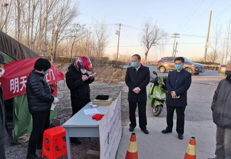 2月17日下午,武强县委常委、政法委书记王国崇到豆村乡企业和部分村就疫情防控情况进行调研。
