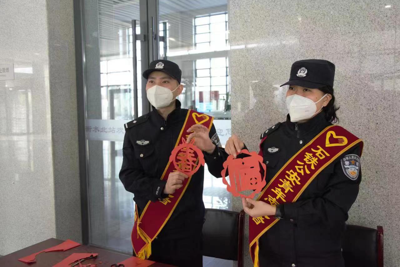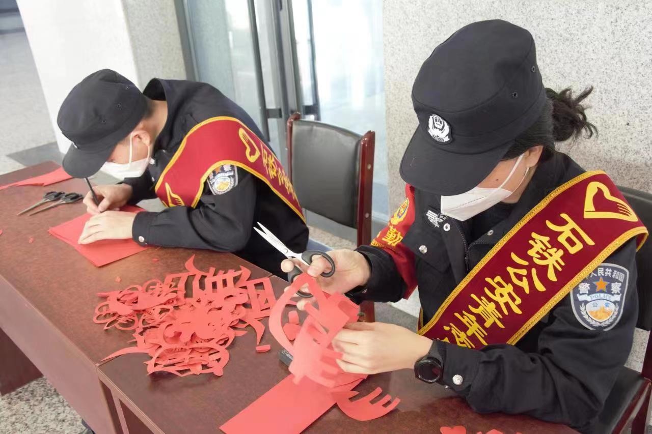 1月10日,是第三个中国人民警察节。当天,衡水北站派出所组织开展了“欢庆警察节剪纸送祝福”活动,民警们现场制作窗花剪纸赠与旅客,为大家送上美好的新春祝福。