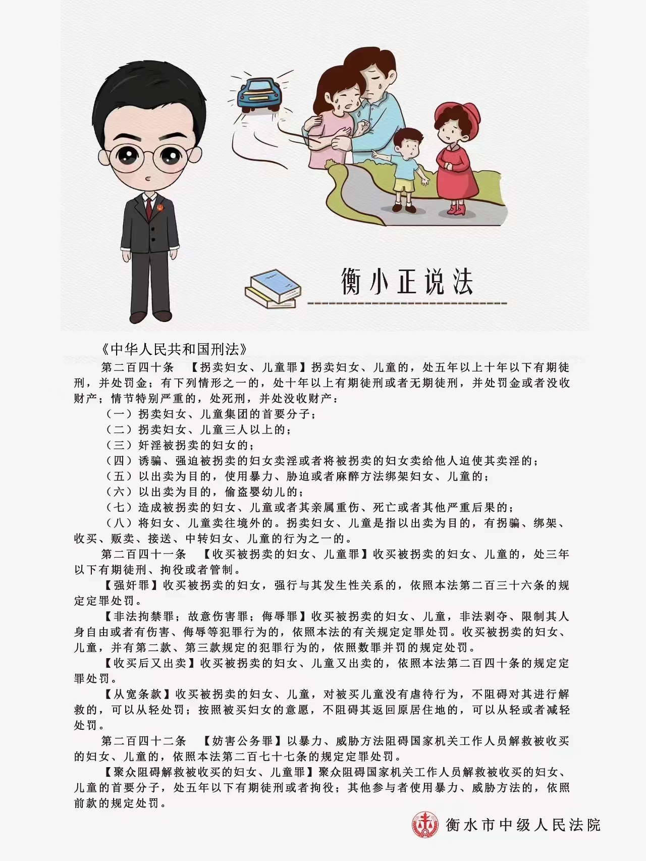 《中华人民共和国刑法》第二百四十条【拐卖妇女、儿童罪】拐卖妇女、儿童的,处五年以上十年以下有期徒刑,并处罚金;有下列情形之一的,处十年以上有期徒刑或者无期徒刑,并处罚金或者没收财产;情节特别严重的,处死刑,并处没收财产。