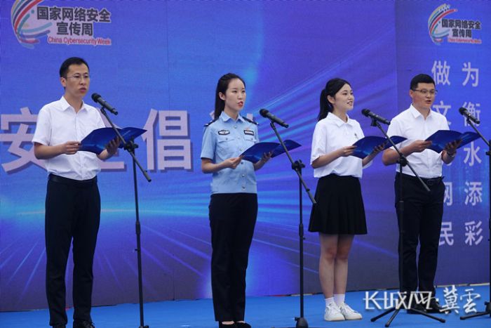 衡水市直部门代表、企业代表、大学生代表、网络名人代表共同宣读网络安全倡议书。