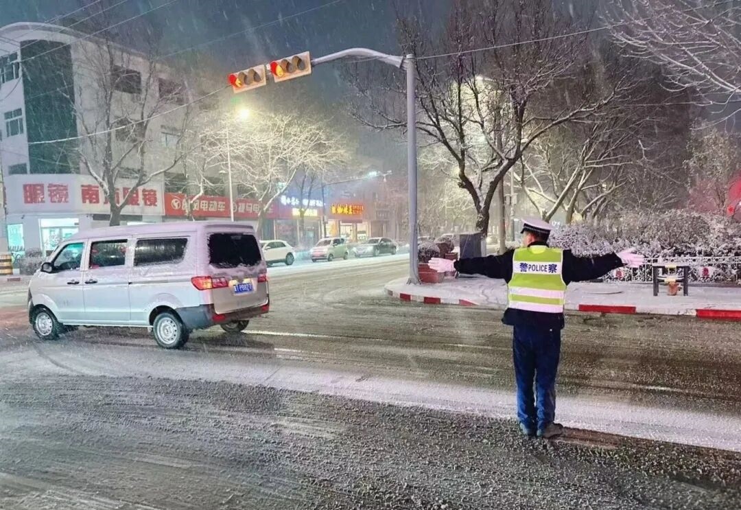面对突如其来的降雪,景县交通管理大队立即进入应急状态,全员上岗,最大限度将警力摆上路面。各执勤点位民警、辅警不畏严寒,在纷飞大雪中化身“指路标”“安全盾”,加强对重要路段的指挥疏导与巡逻管控,全力预防道路交通事故发生,确保辖区道路交通有序、安全、畅通。风雪模糊了他们的身影,却让身上的荧光绿更加耀眼,他们用坚守诠释责任,为群众平安出行开辟“暖心通道”。