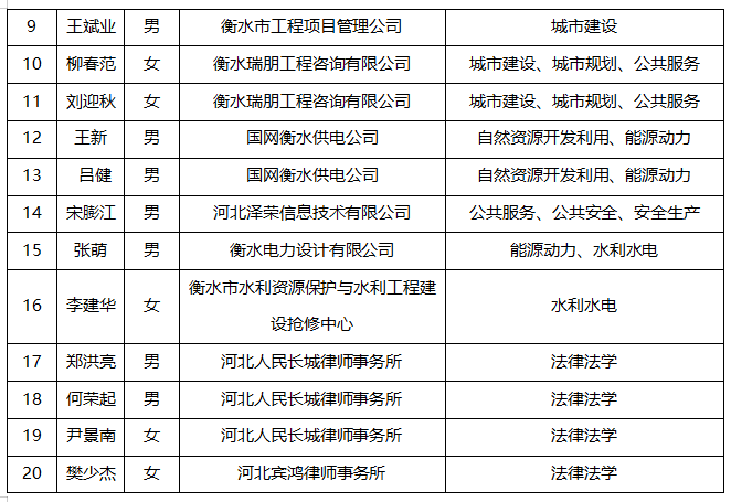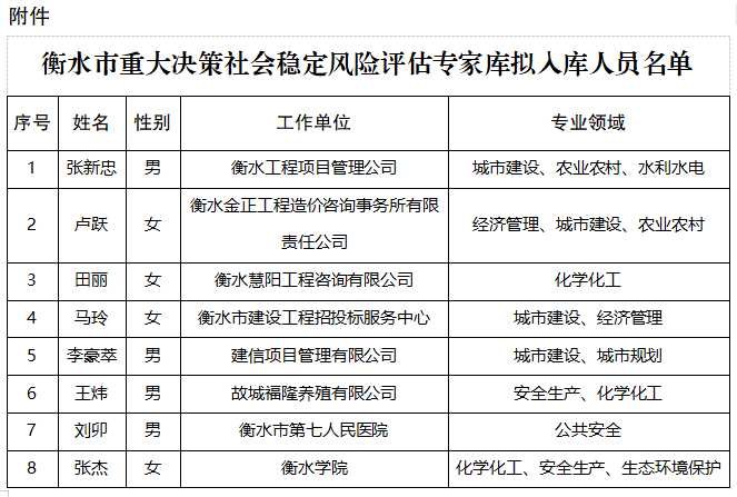 衡水市重大决策社会稳定风险评估专家库第二批拟入库人员名单公示